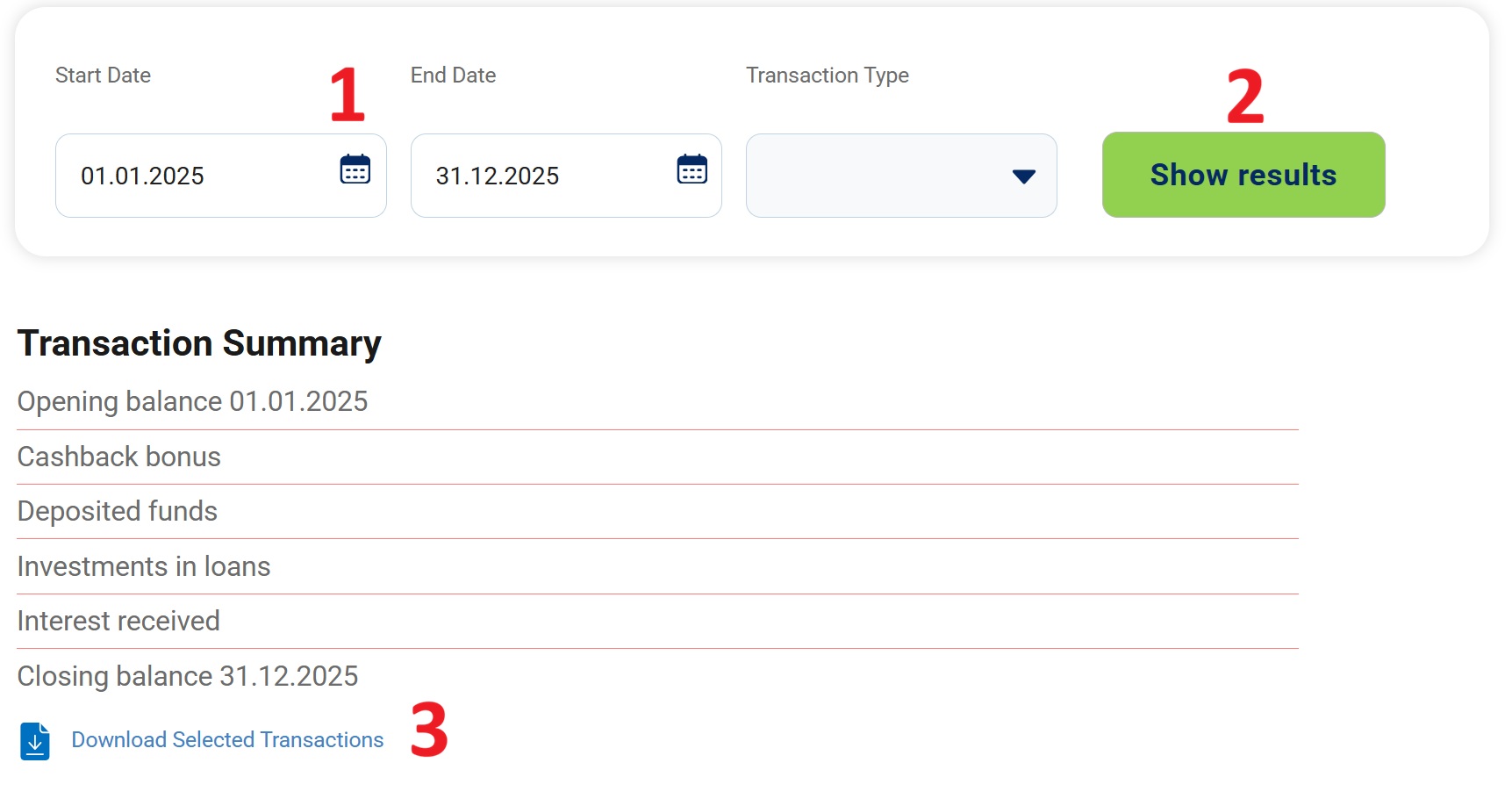 Pobierz roczny wyciąg transakcji z platformy i wgraj go poniżej. Wyniki otrzymasz w pliku Excel gotowym do rozliczenia PIT.