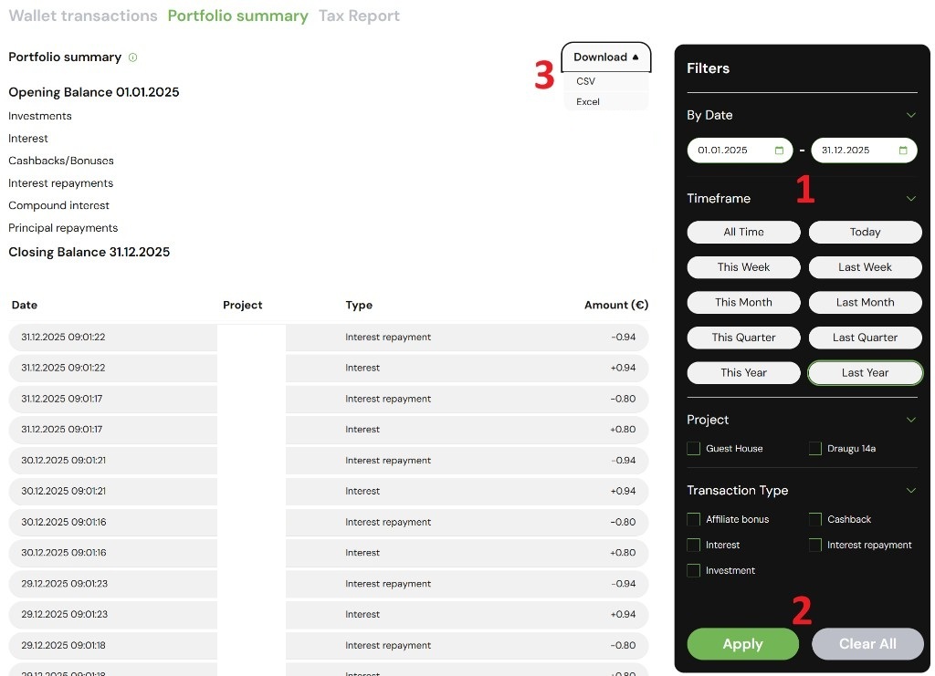 Pobierz roczny wyciąg transakcji z platformy i wgraj go poniżej. Wyniki otrzymasz w pliku Excel gotowym do rozliczenia PIT.