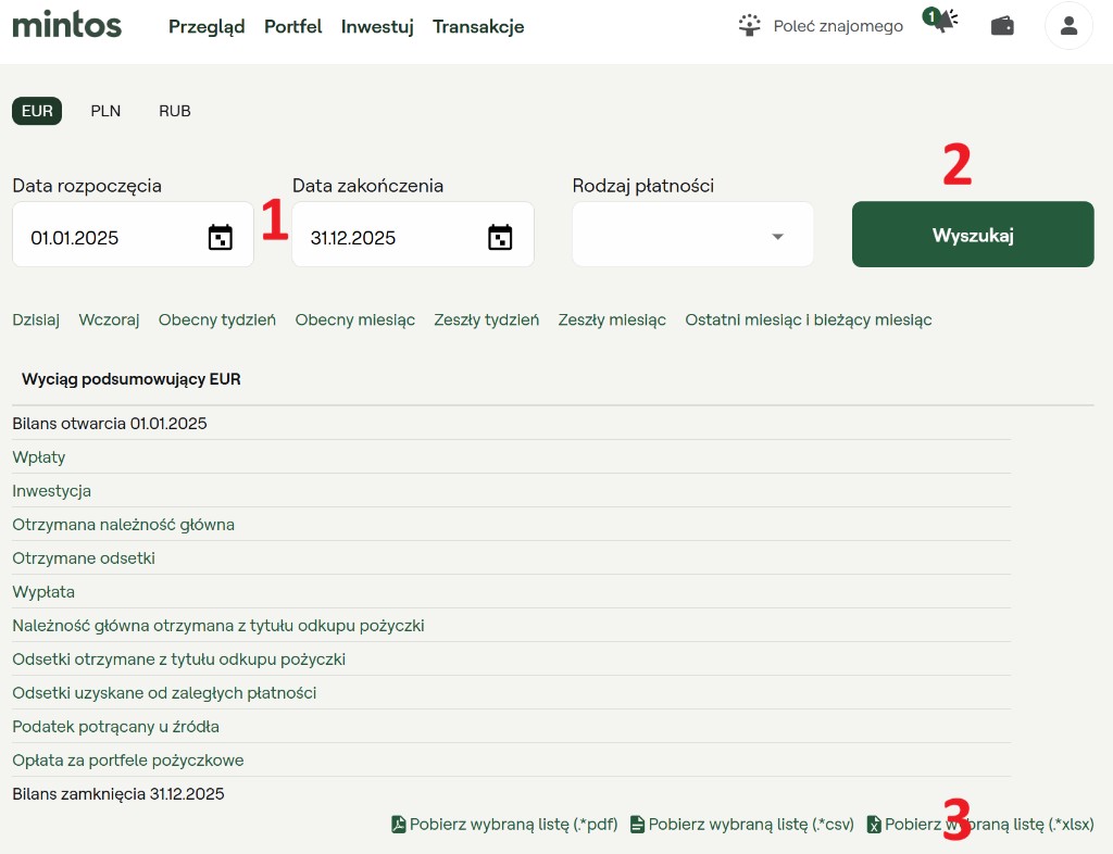 Jak pobrać wyciąg z Mintos?